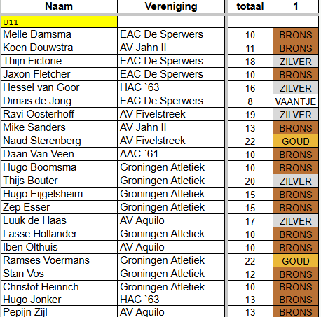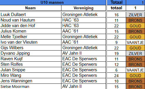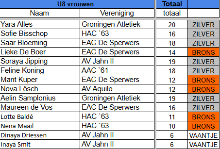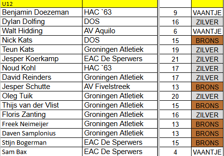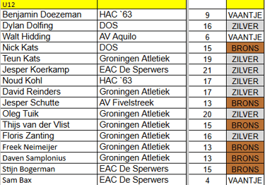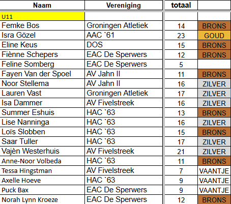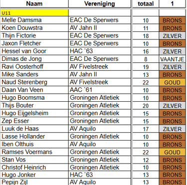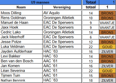 De uitslagen van de individuele wedstrijden zijn te vinden via Atletiek.nu.